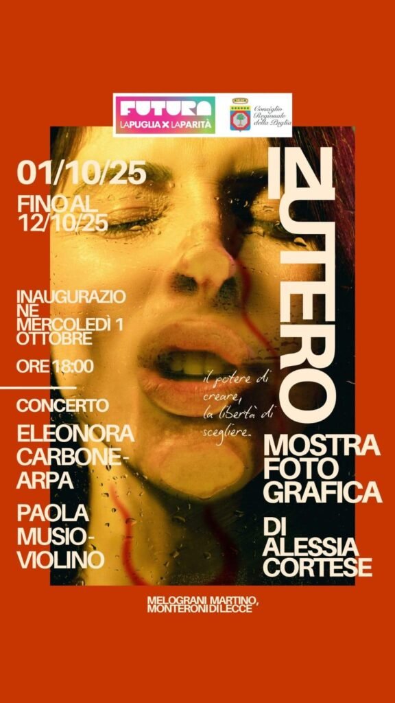 Mercoledì 1 ottobre 2025, alle ore 18.00, si terrà l’inaugurazione di una serie di eventi presso Melograni Martino a Monteroni di Lecce, nell’ambito del bando “Futura La Puglia per la Parità”. Al centro dell’evento inaugurale la mostra fotografica “In Utero” di Alessia Cortese (in esposizione per due settimane) e il concerto delle musiciste Eleonora Carbone […]